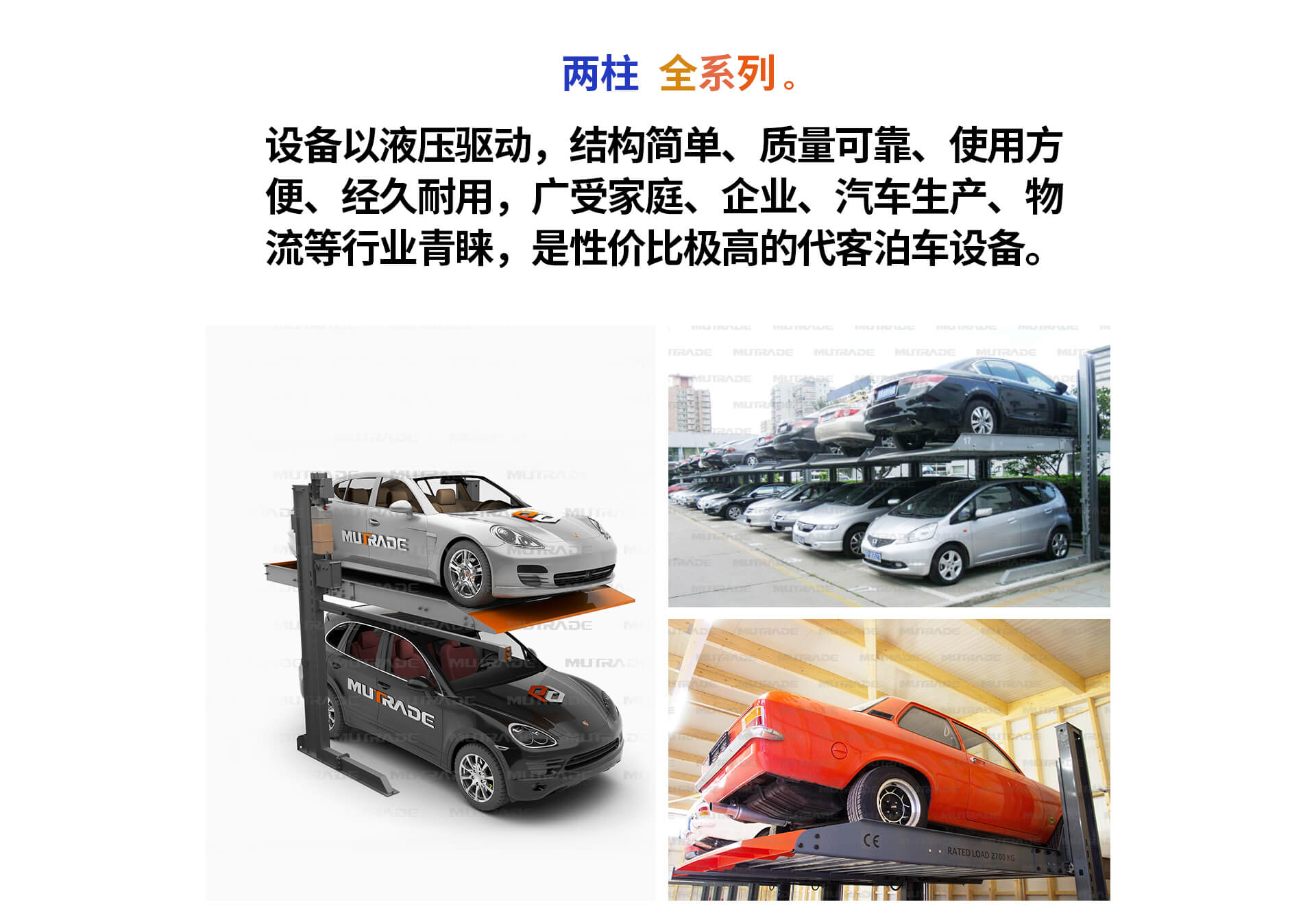 兩柱系列 HP1123 和 1127 是由我司研發(fā)生產(chǎn)的簡(jiǎn)易類立體停車設(shè)備。 該設(shè)備在過去 10 年中行銷全球 90 多個(gè)國(guó)家,累計(jì)銷售 30000 余臺(tái)。