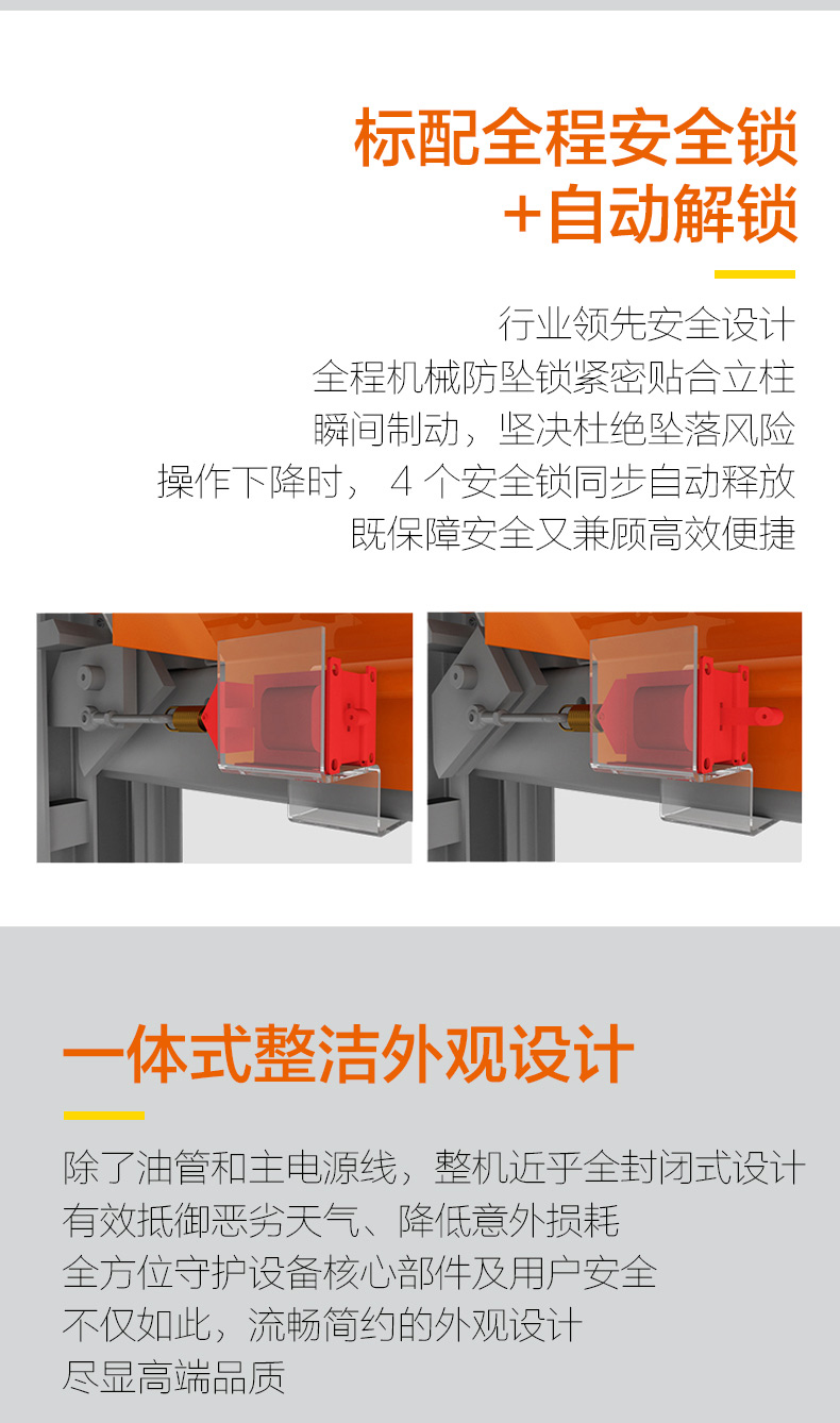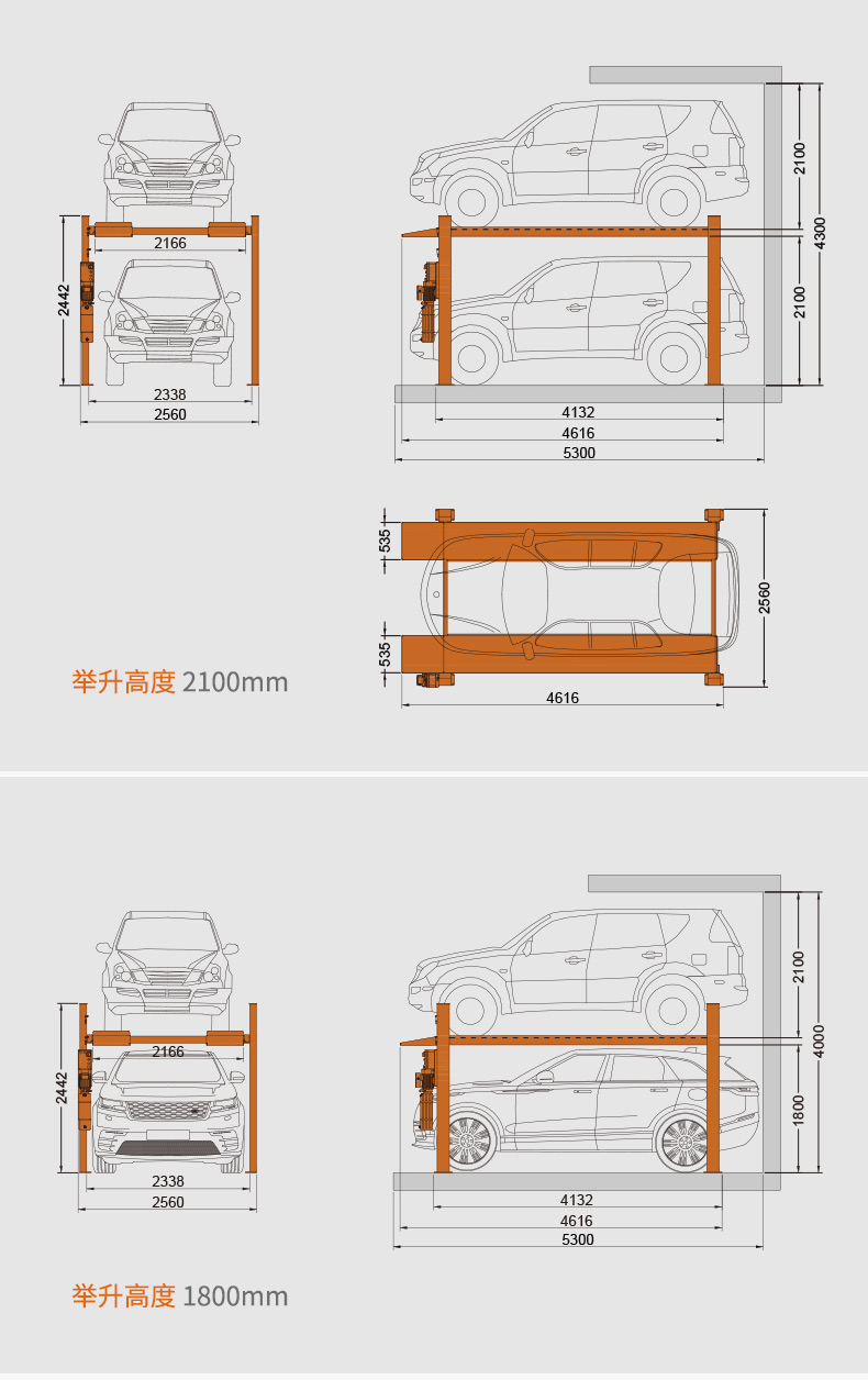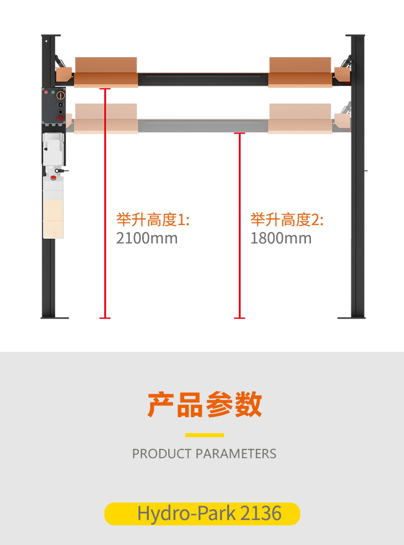 HP2136在傳統(tǒng)四柱式舉升機的成熟技術(shù)上深度優(yōu)化,專為停車和長時存車用途量身打造。標配自動解鎖方式,載重3600kg,跑板外寬增加至2166mm,停車高度2100mm,同時標配熱鍍鋅材質(zhì)的高強度接油盤,兼具停車和修車功能。